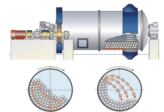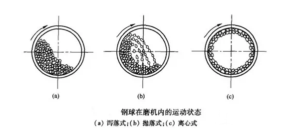 球磨機是選礦設備中常用的設備之一。轉速是球磨機設計和操作的主要參數(shù)之一,轉速大小直接決定著筒體內磨礦介質的運動狀態(tài)和磨礦作業(yè)的效果。轉速過快或過慢都會減弱或失去粉碎作用。本文介紹不同轉速下不同的磨礦作用效果。